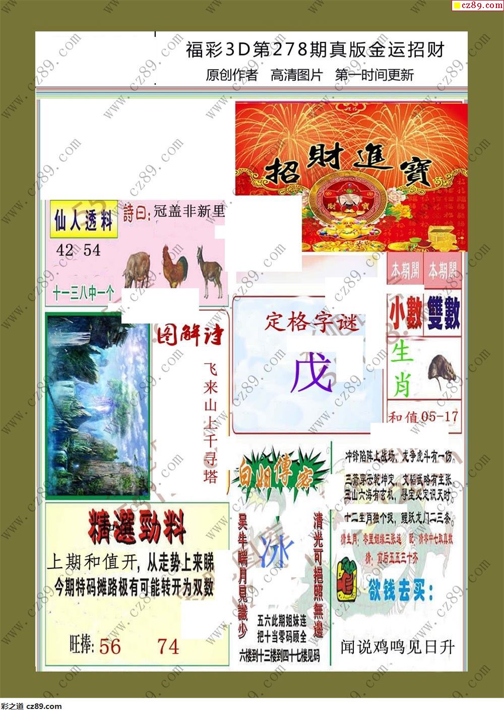 > 25年278期福彩3d金运招财画迷