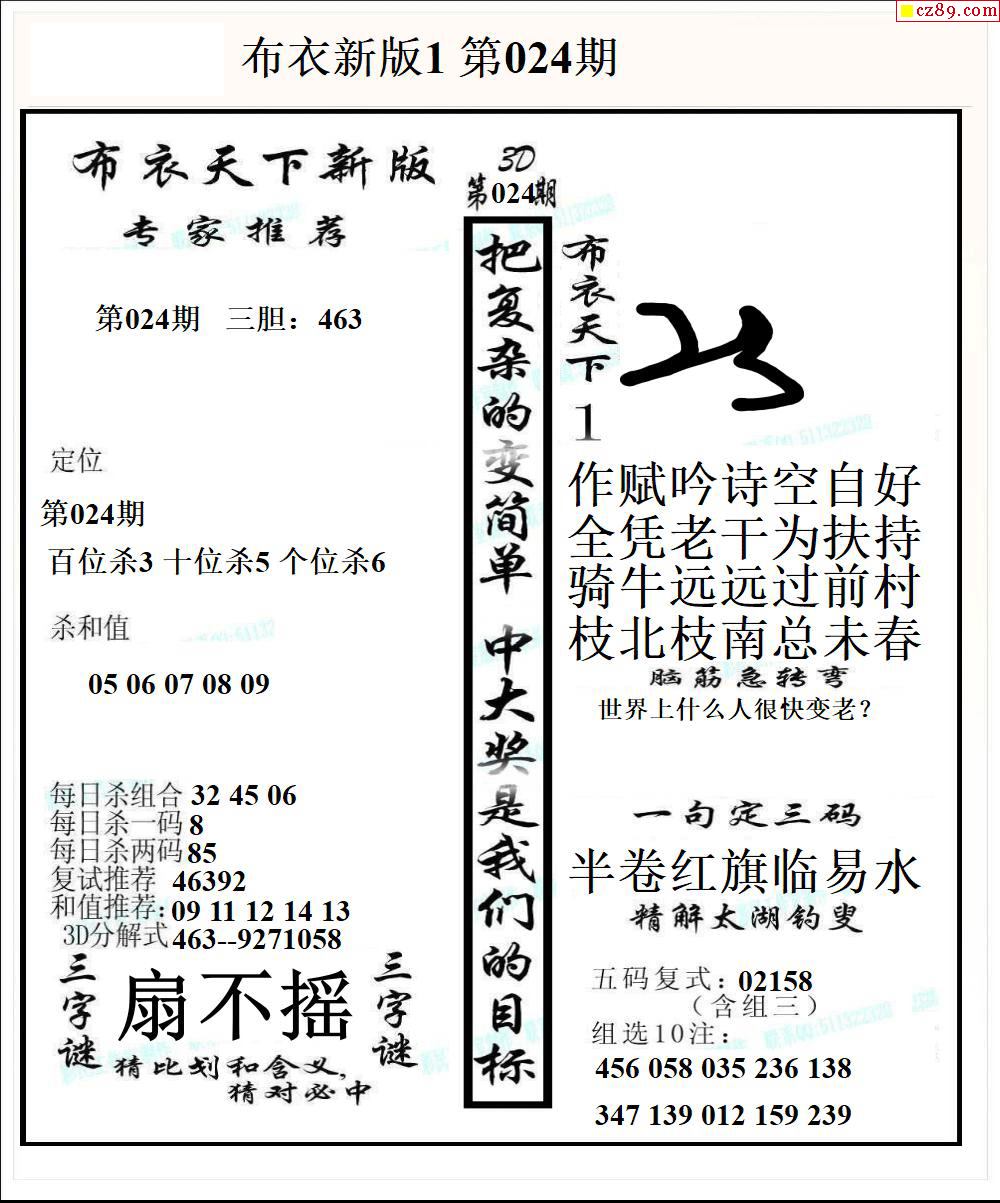 布衣天下新版2026024期3d图谜